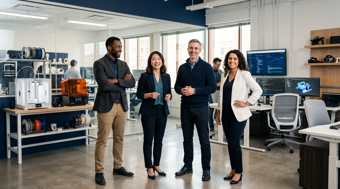 Wir machen Spitzentechnologie zugänglich — für den deutschen Mittelstand. Mit der einzigartigen Verbindung aus KI und 3D-Druck treiben wir Ihre Innovation voran.